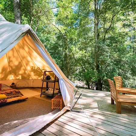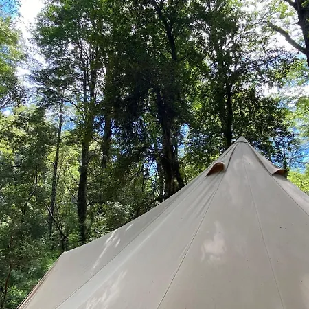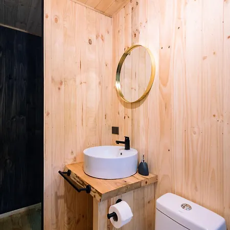 This Pucon luxury tent faces the river. There is a private bathroom that offers guests the enjoy a shower.
